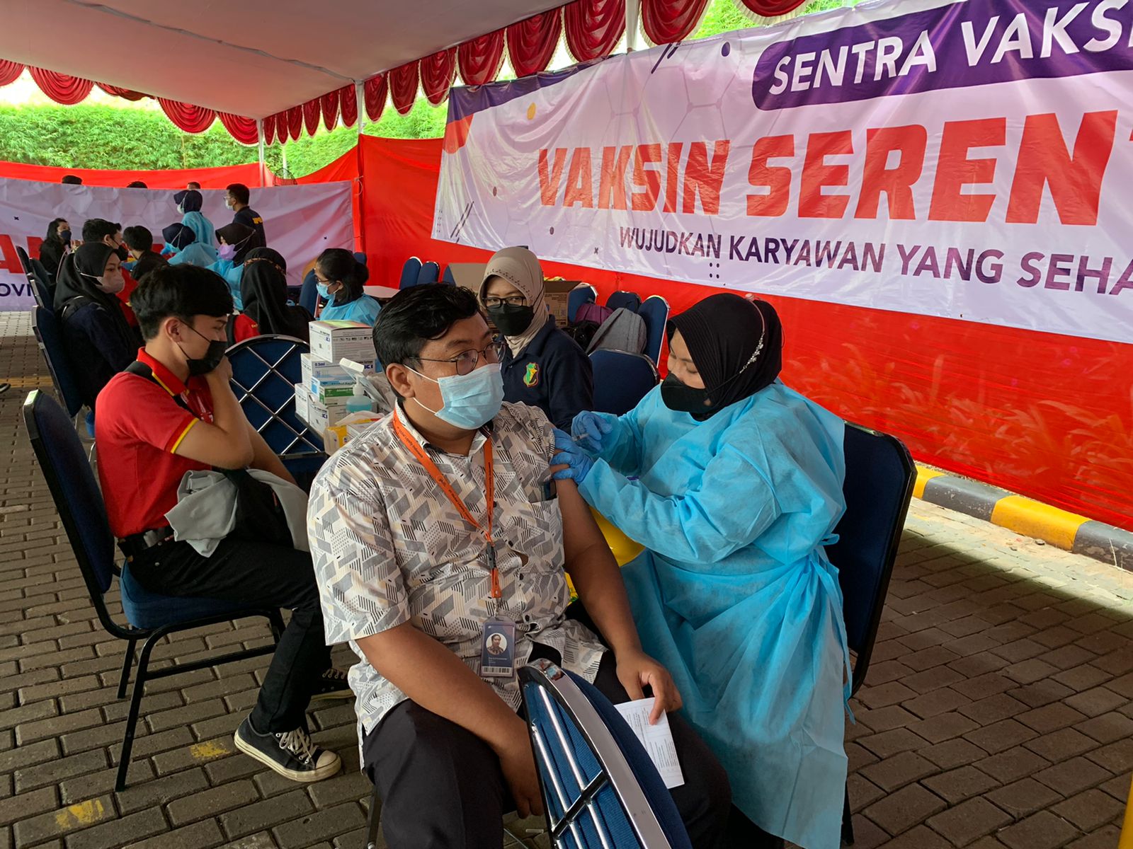 Vaksinasi dipimpin oleh ipda dr. Gerasimos dengan tim vaksinator Rumah Sakit Bhayangkara Polda Banten.