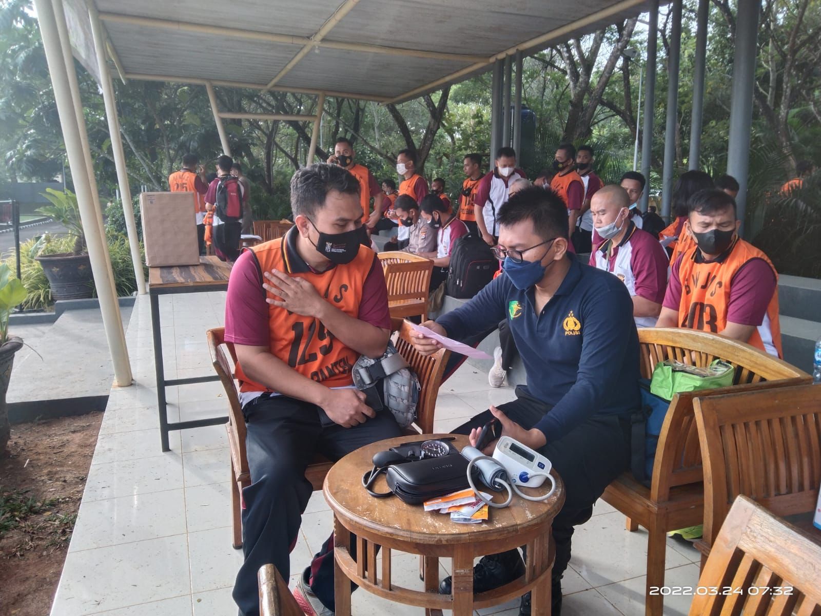Serang (suarasiber.co.id) – Personel Biddokkes Polda Banten melaksanakan kegiatan pengecekan dan pengawasan kesehatan terhadap personel yang mengikuti kesmaptaan jasmani di Mapolda Banten pada Kamis (24/03).
