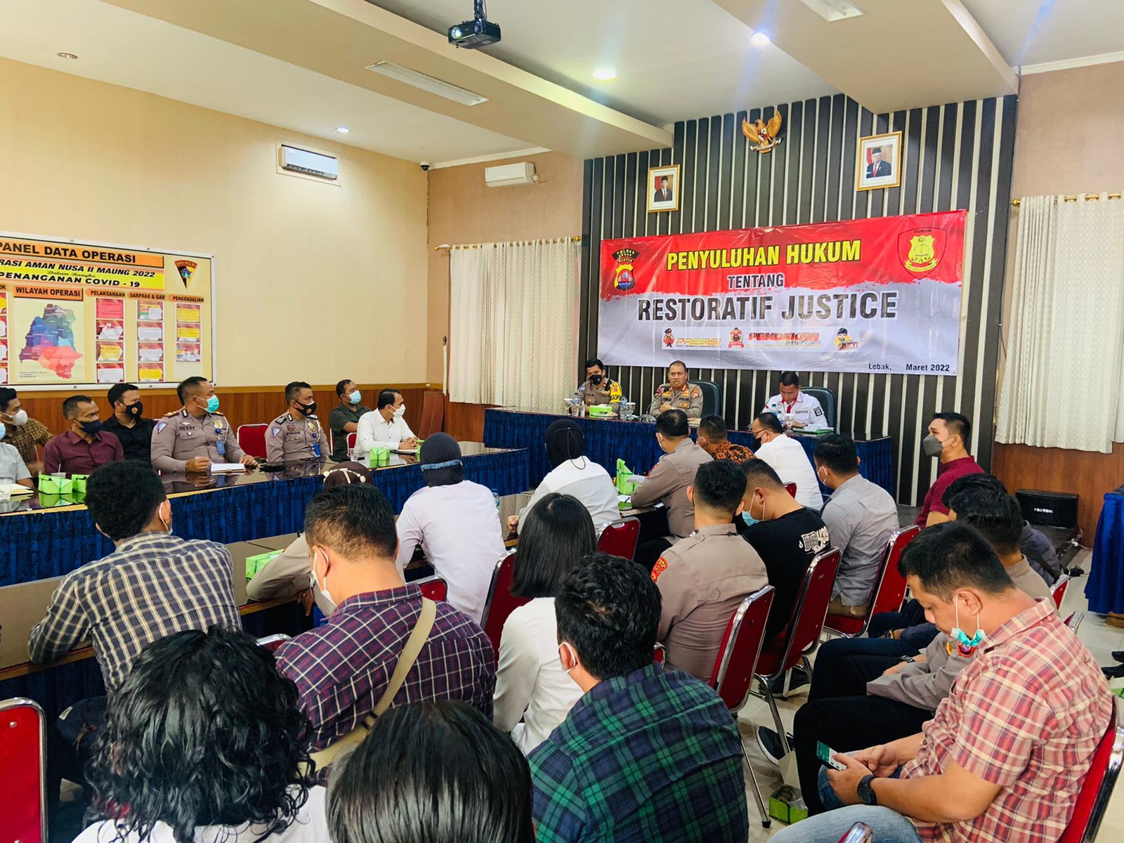 Kegiatan dilaksanakan di Aula Polres Lebak dihadiri Personel Bidkum Polda Banten Kombes Pol Achmad Yudi Suwarso, Kompol Giyarto, AKP Agus Mujiono, beserta tim Bidkum yg diperintahtugaskan. Adapun Peserta penyuluhan hukum yg dihadirkan para Kasat/Kanit Opsnal Gakkum Polres/Polsek dan Jajaran.