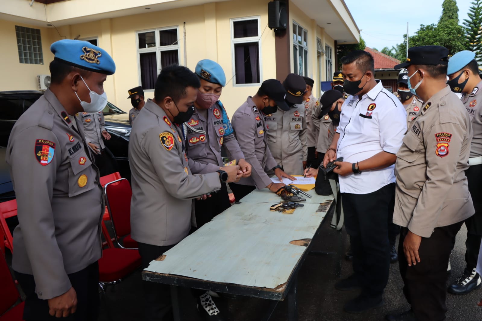 “Kepada seluruh Personil Saya ingatkan agar berhati-hati dalam menggunakan senpi, Senpi digunakan ketika benar-benar dibutuhkan dalam kondisi darurat yang mengancam keselamatan masyarakat dan petugas,” tegas Wiwin.