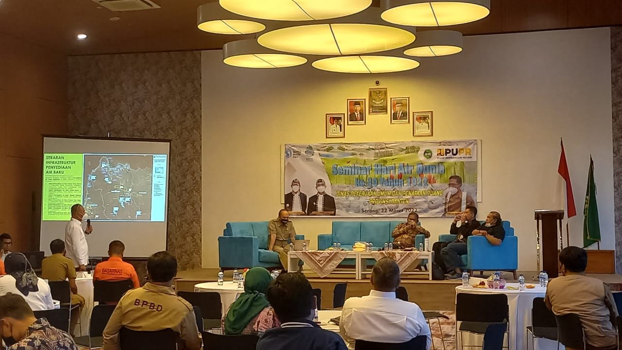 Dalam rangka memperingati Hari Air Dunia ke 30 tahun 2022, Pemerintah Provinsi (Pemprov) Banten melalui Dinas Pekerjaan Umum dan Penataan Ruang (DPUPR) Provinsi Banten menggelar seminar, Selasa (22/3/2022). Kegiatan menghadirkan narasumber yang berkonsentrasi dalam pengelolaan sumber daya air, diantaranya Praktisi SDA atau Ahli Bendungan Dantje Kardana, Kepala Balai Besar Wilayah Sungai Cidanau-Ciujung-Cidurian I Ketut Jayada, Akademisi Universitas Sultan Ageng Tirtayasa Asep Ridwan dan Ketua Dewan Pendiri Rekonvasi Bhumi Agus Setiawan.