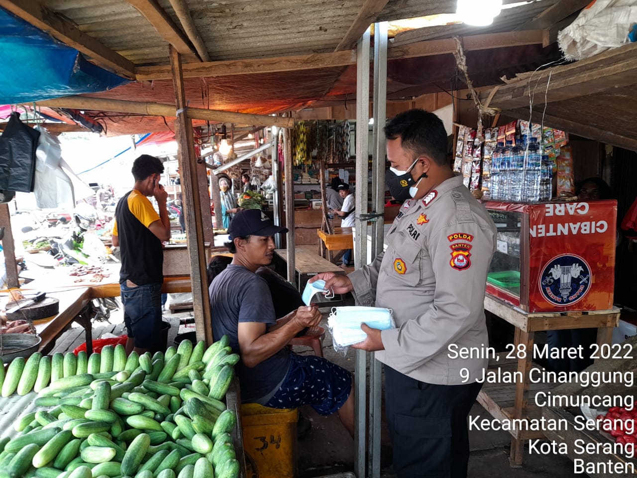 Kegiatan dilaksanakan oleh Staf Subdit Bintibsos Bripka M. Afif, Briptu Egi Hidayat serta Bripda Angga Apriana. Pembagian masker dilakukan di tempat yang padat akan aktivitas masyarakat. Pasar Rau Kota Serang menjadi sasaran sambang kali ini.