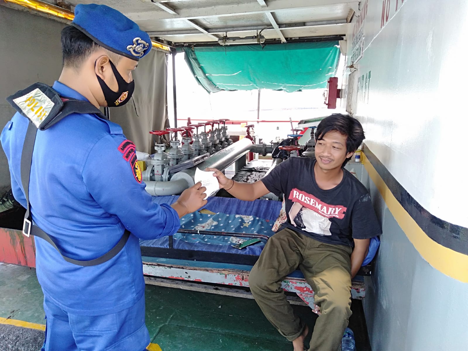 Cilegon (suarasiber.co.id) – Guna mengantisipasi gangguan Kamtibmas di wilayah perairan Polda Banten, personel Ditpolairud Polda Banten melakukan patroli dialogis serta bagikan masker.