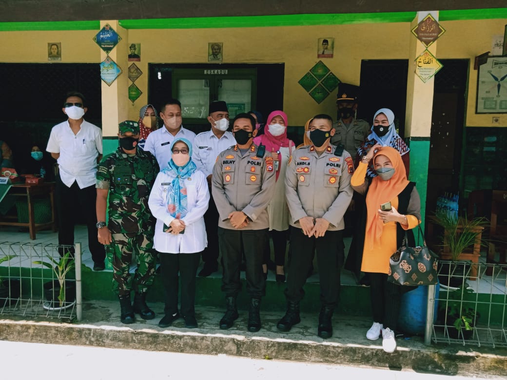 PANDEGLANG,(suarasiber.co.id)-Kapolres Pandeglang, AKBP Belny Warlasyah yang didampingi Wakapolres Kompol Andi dan Camat Pandeglang, Neneng Nuraeni melakukan monitoring kegiatan vaksin pelajar dosis dua di SD Negeri Kabayan 2, Kecamatan Pandeglang, Rabu (14/03/2022).