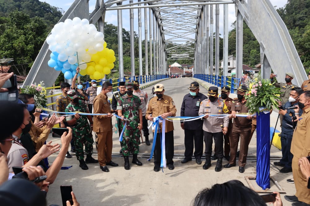 LEBAK,(suarasiber.co.id)- Kapolres Lebak Polda Banten AKBP Wiwin Setiawan,SIK,M.H. menghadiri Peresmian Jembatan Ciberang Proyek Rehabilitasi Jalan dan Jembatan Ruas Cipanas Warung Banten di Kp. Muhara Ds. Ciladaeun Kec. Lebakgedong Kab. Lebak. Senin (28/3/2022).