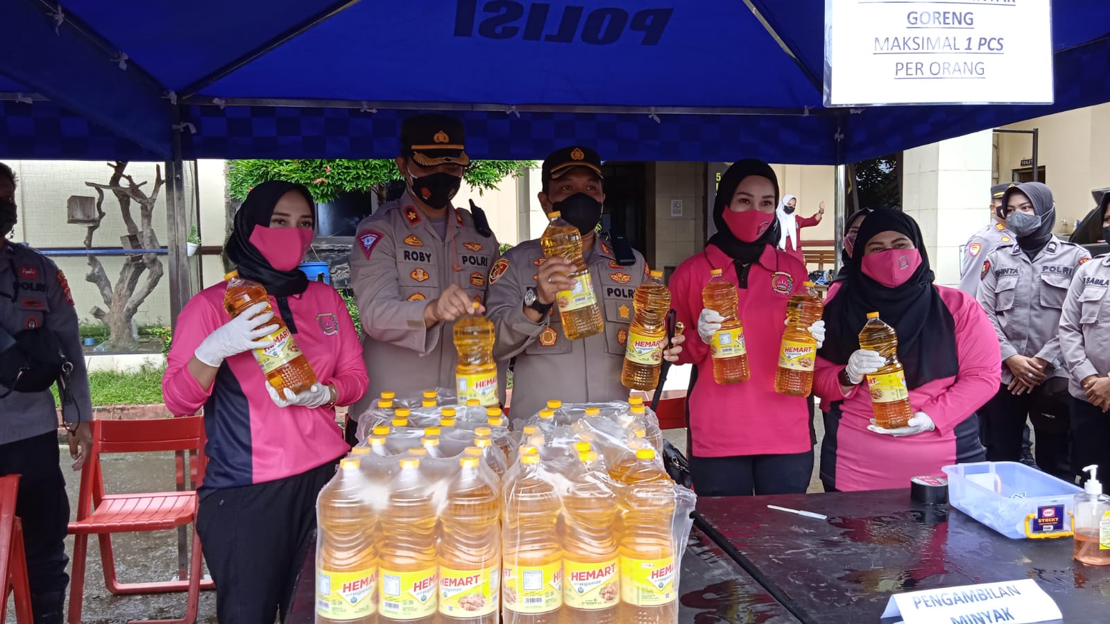 “Minyak goreng yang di sediakan oleh Polres Lebak sebanyak 300 dus / 3.600 liter, minyak goreng merek Hemart kemasan botol ukuran 2 liter di jual dengan harga Rp.13.750/liter,” tambahnya.
