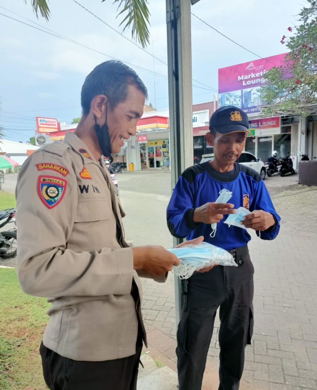 Pembagian masker dilakukan oleh Iptu Winardi selaku Staf Subdit Binpolmas, menyambangi masyarakat serta membagikan masker. “Hari ini Ditbinmas Polda Banten membagikan masker kegiatan ini merupakan upaya kepedulian Ditbinmas kepada kesehatan masyarakat, dimasa pandemi ini hal yang sangat dibutuhkan yaitu penerapan prokes, salah satunya dengan mengenakan masker,” kata Winardi.