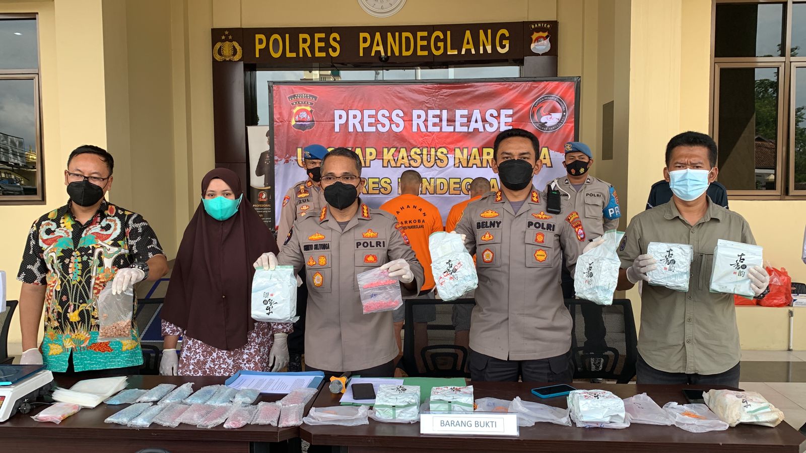 Dijelaskan melalui press conference yang dipimpin Kabid Humas Polda Banten Kombes Pol Shinto Silitonga didampingi Wadirresnarkoba Polda Banten AKBP Niko Setiawan, Kapolres Pandeglang AKBP Belny Warlansyah dan Kasat Narkoba Polda Banten AKP Ilman Robiana yang digelar di Loby Utama Polres Pandeglang pada Jumat (11/03) siang.