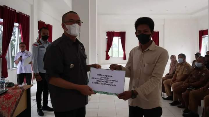 KOTA PAGAR ALAM – (Suarasiber.co.id) Wali Kota Pagar Alam Alpian Maskoni secara simbolis menyerahkan bonus insentif kepada RW/RT se-Kecamatan Dempo Utara pada Triwulan Pertama Tahun Anggaran 2022, bertempat di Aula Kantor Camat Dempo Utara, Selasa (29/03/2022).