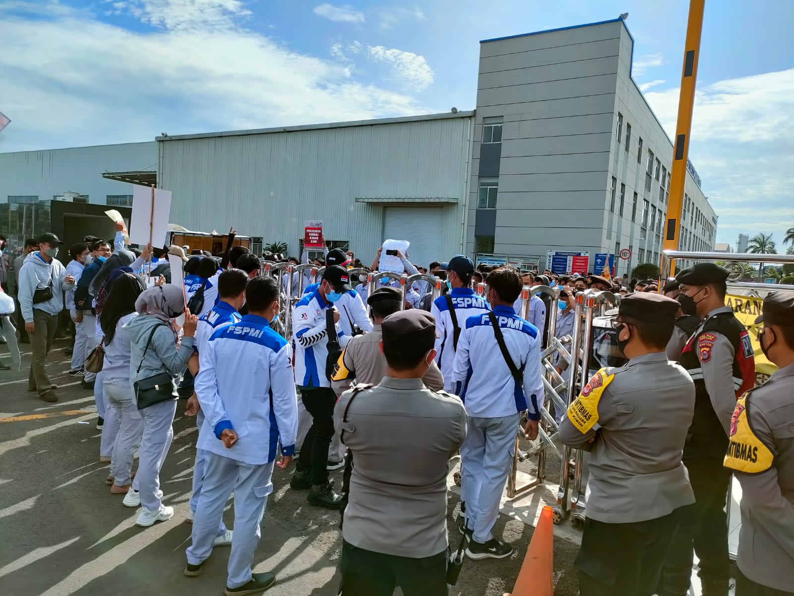 Saat ditemui disela-sela kesibukannya, Dirpamobvit Polda Banten Kombes Pol Edy Sumardi menjelaskan bahwa pengamanan unjuk rasa ini dilakukan sejak hari Senin dan informasinya besok Jumat adalah hari terakhir aksi unjuk rasa. “Ini adalah hari ke 4 personel Ditpamobvit Polda Banten melakukan pengamanan aksi unjuk rasa di PT Sokonindo yang mana aksi unjuk rasa ini dilakukan oleh karyawan yang di PHK secara sepihak oleh perusahaan, PT Sokonindo ini berada di Kawasan Industri Modern Cikande Industrial Estate yang merupakan objek vital nasional sehingga keamanannya perlu diperkuat, maka kami pun berkoordinasi dengan Polres Serang dan Polsek Cikande.”ujarnya.