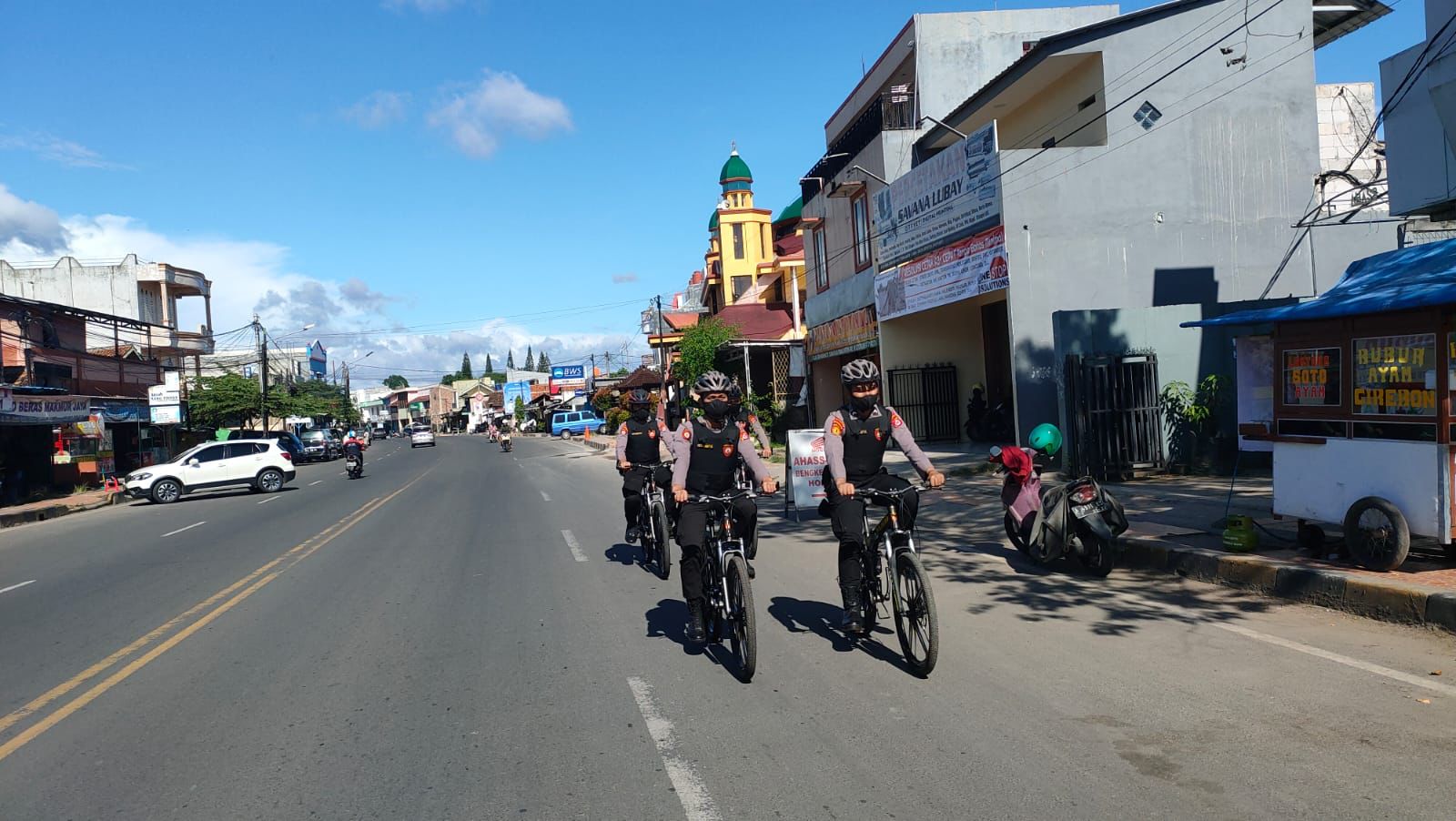 Patroli bersepeda dipimpin oleh Panit Turjawali Disamapta Polda Banten Ipda Yogo Handono beserta personel Ditsamapta Polda Banten.
