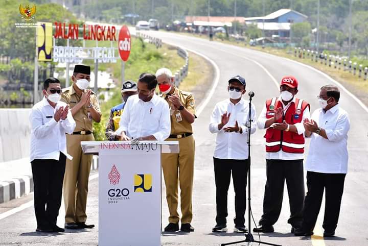 KAB. BREBES (suarasiber.co.id) – Presiden RI Joko Widodo (Jokowi) meresmikan Jalan Lingkar Brebes-Tegal sepanjang 17,4 kilometer, di Kabupaten Brebes, Jawa Tengah, Rabu (13/04/2022). Infrastruktur ini akan melengkapi jaringan jalan nasional di Pantai Utara (Pantura) dan Jalan Tol Trans Jawa.