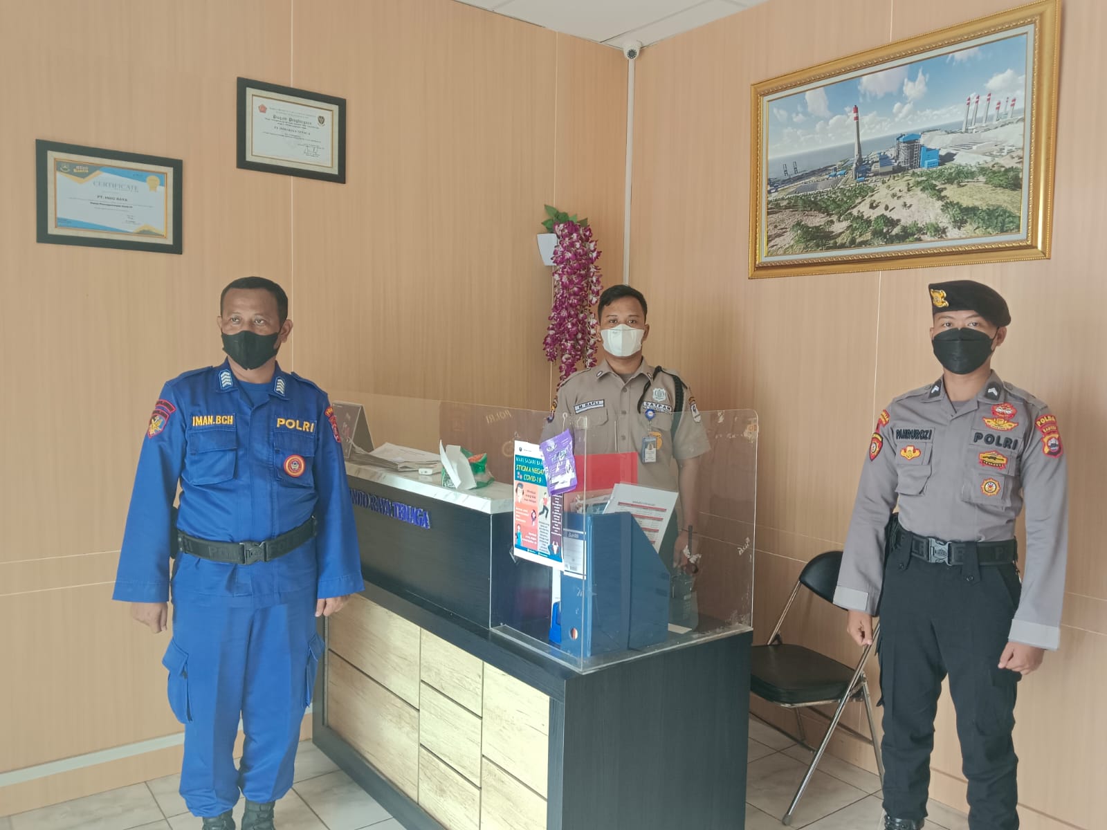 Selanjutnya Kompol Winarno menjelaskan, “Dimasa pandemi Covid-19 kami bersama personel TNI dan security selalu memberikan imbauan protokol kesehatan. Dan selalu mengarahkan kepada setiap karyawan maupun tamu agar sebelum memasuki kawasan perusahaan menerapkan 5M, seperti memakai masker dan mencuci tangan contohnya” tutup Mujianto. (RR)