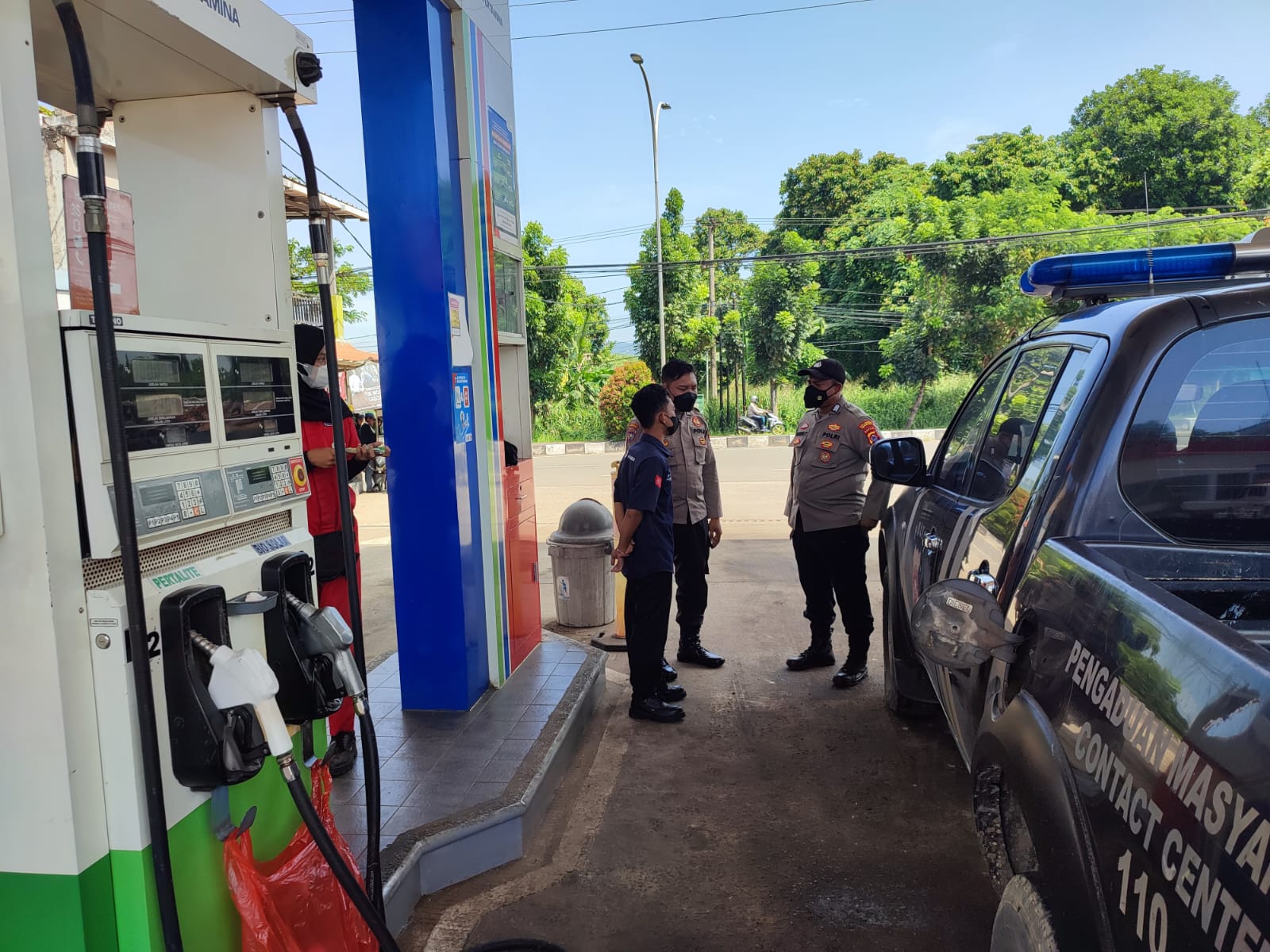 Kali ini SPBU (Stasiun Pengisian Bahan Bakar Umum) salah satu tempat yang berada di lingk.Nancang kel.Karundang dipatroli oleh Bhabinkamtibmas Bripka sukur Polsek Cipocok Jaya polres Serkot selain itu juga menyampaikan pesan-pesan dan himbauan kamtibmas kepada karyawan SPBU agar mewaspadai dengan situasi seperti sekarang jangan sampai stok BBM kehabisan.