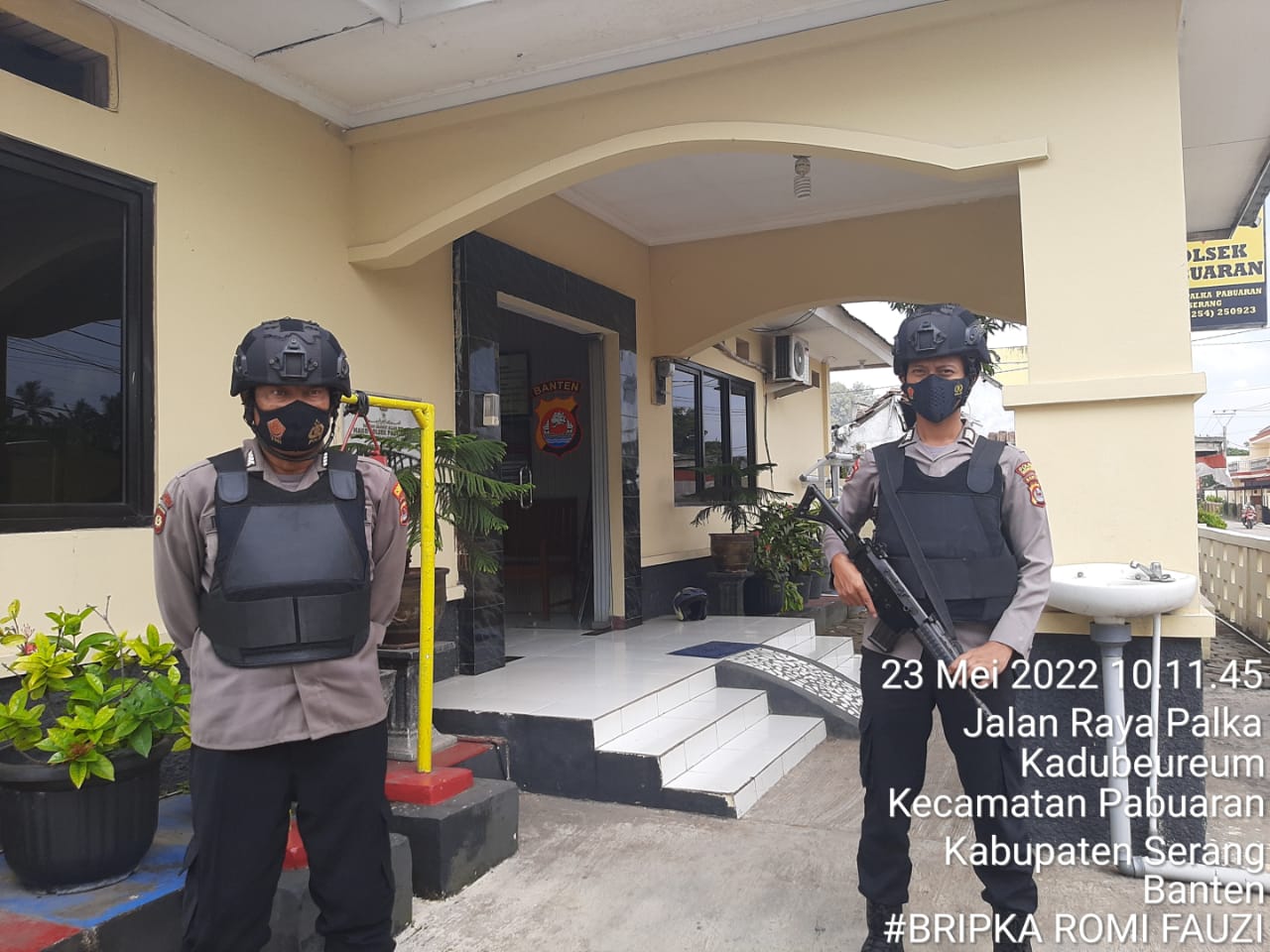 POLRESTA SERKOT, (Suarasiber.co.id) | Personil Polsek Pabuaran Polres Serkot Polda Banten Melaksanakan Sispam Mako atau Sistem Pengamanan Markas Komando di Mako Polsek Pabuaran. Senin,(23/05/2022).