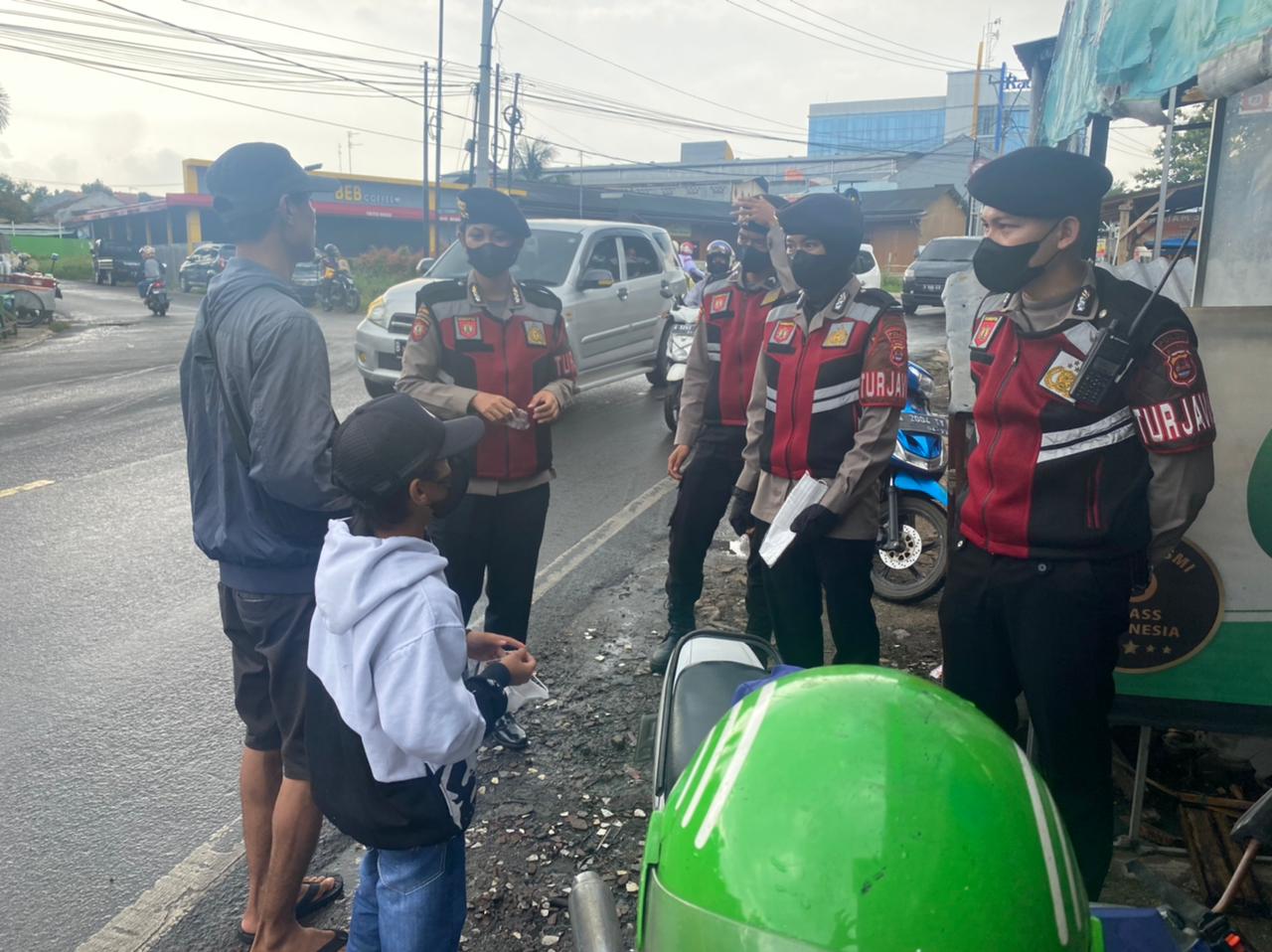 “Personel dilapangan tidak hanya melakukan patroli saja, melainkan mengimbau kepada masyarakat agar selalu disiplin terapkan Prokes dengan 5M yaitu memakai masker, mencuci tangan, menjaga jarak, menghindari kerumanan, dan membatasi mobilitas guna mencegah penyebaran Covid-19,” terang Murwoto.