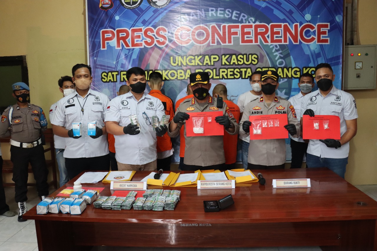 Kapolresta Serang Kota Kombes Pol Nugroho Arianto di dampingi Kasat Resnarkoba AKP Agus Ahmad Kurnia, Kaur Binops Iptu Saepudin, Kanit I Ipda Hadyan Hawari dan Kanit II Charles Rio Valentine.