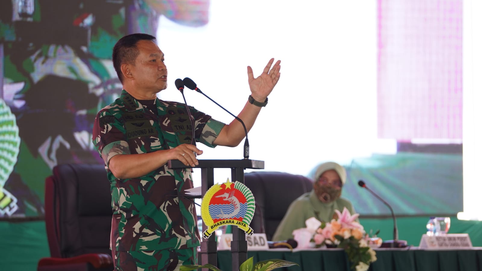 Dalam pengarahan yang juga dihadiri Ketua Umum Persit KCK Ny. Dudung Abdurachman, Pangdam V/Brawijaya Mayjen TNI Nurcahyanto, dan para Asisten Kasad serta Danrem 084/BJ, Kasad menyampaikan bahwa apapun permasalahan masyarakat, TNI AD harus hadir untuk memberikan solusi.