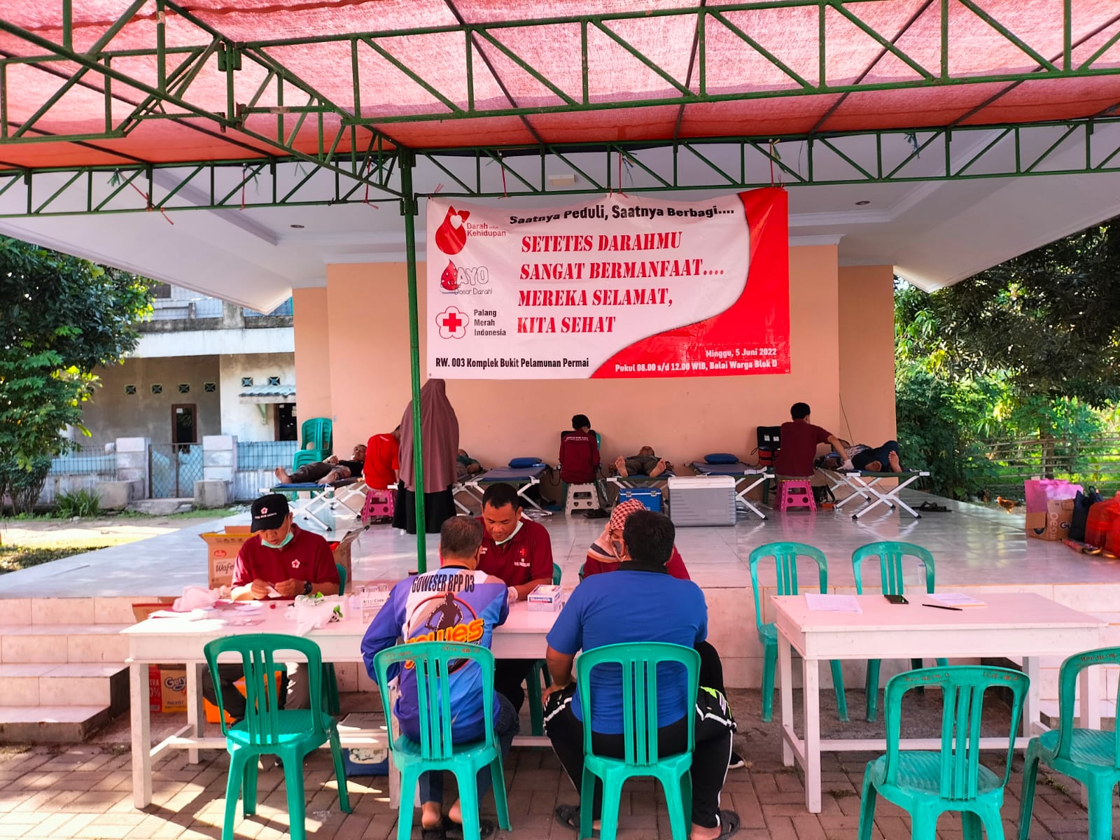 KRAMATWATU, (suarasiber.co.id) – Bakti Sosial Donor Darah warga Komplek Bukit Pelamunan Permai (BPP) RW 003, Desa Pelamunan Kecamatan Kramatwatu Kabupaten Serang, bekerja sama dengan UTD (Unit Transfusi Darah) PMI (Palang Merah Indonesia) Kabupaten Pandeglang. Minggu 05/06/2022