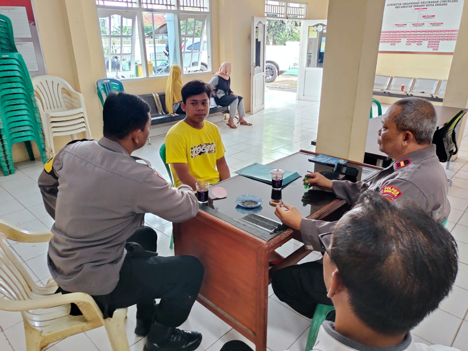 Yang hadir dalam kegiatan tersebut Panit Binmas II Ipda Irwan Purnawan dan Bripka Ari Fidiansyah Bhabinkamtibmas Kelurahan Cimuncang untuk melaksanakan Silaturahmi atau sambangi Setaf Kelurahan Cimuncang Kecamatan Serang Kota Serang.