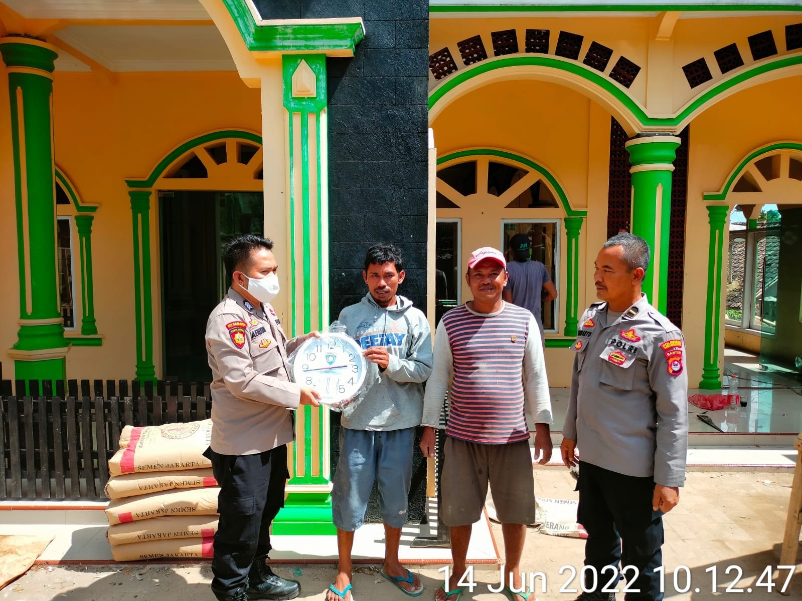 Dalam giat tersebut Personel Polsek Ciomas Polresta Serkot berikan bantuan berupa semen dan jam dinding.
