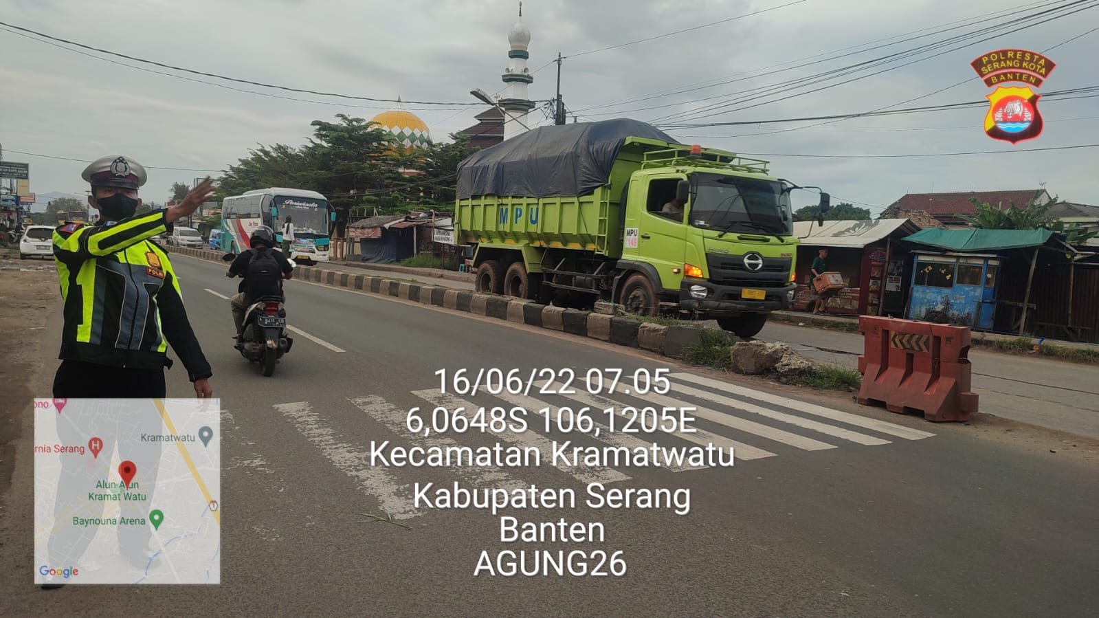 Anggota Unit Lantas Polsek Kramatwatu Polresta Serkot dalam kesehariannya, pada jam-jam tertentu selalu berada di persimpangan TL Kramatwatu guna melaksanakan penjagaan, pengaturan dan pemantauan arus lalu lintas.