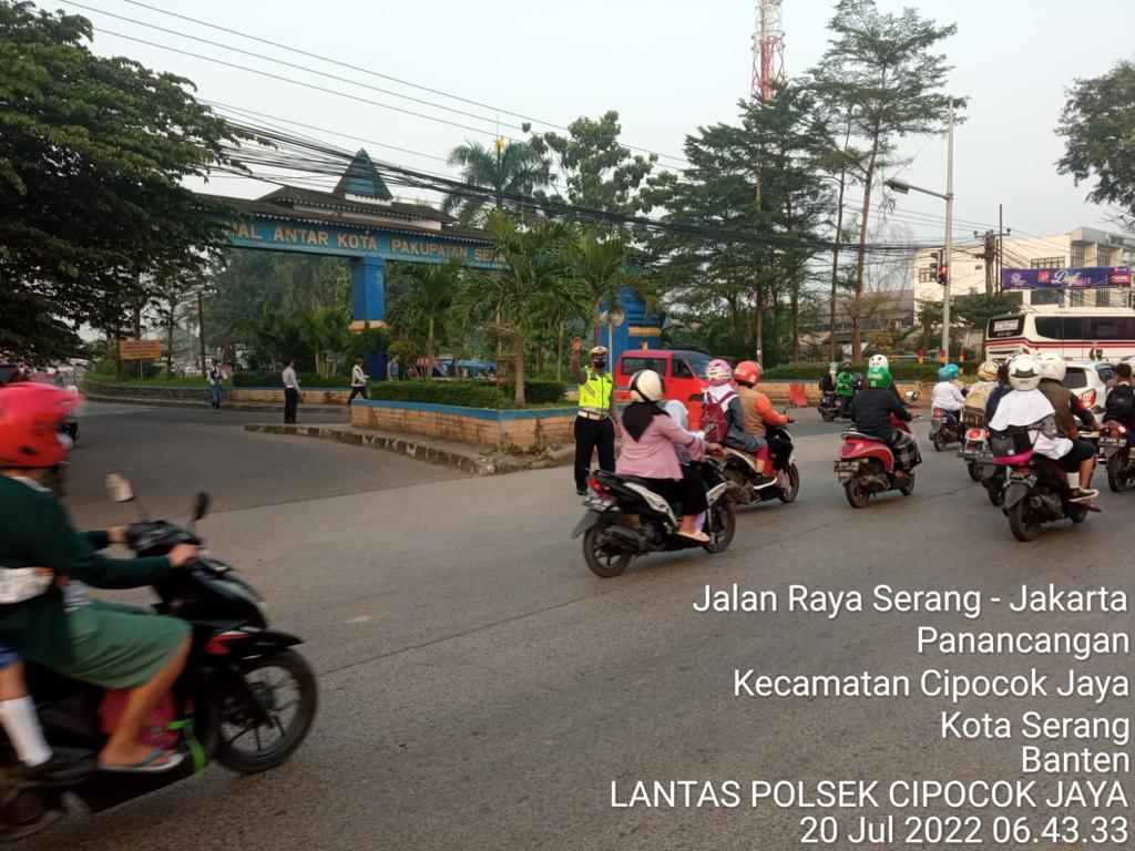 POLRESTA SERKOT,(Suarasiber.co.id) -Lantas Polsek berikan rasa aman dan nyaman kepada pengendara kendaraan bermotor di pagi hari Polsek Cipocok Jaya polresta Serkot Polda Banten melaksanakan Pengaturan arus lalu lintas pagi hari di depan terminal pakupatan kel.penancanagan Cipocok Jaya.