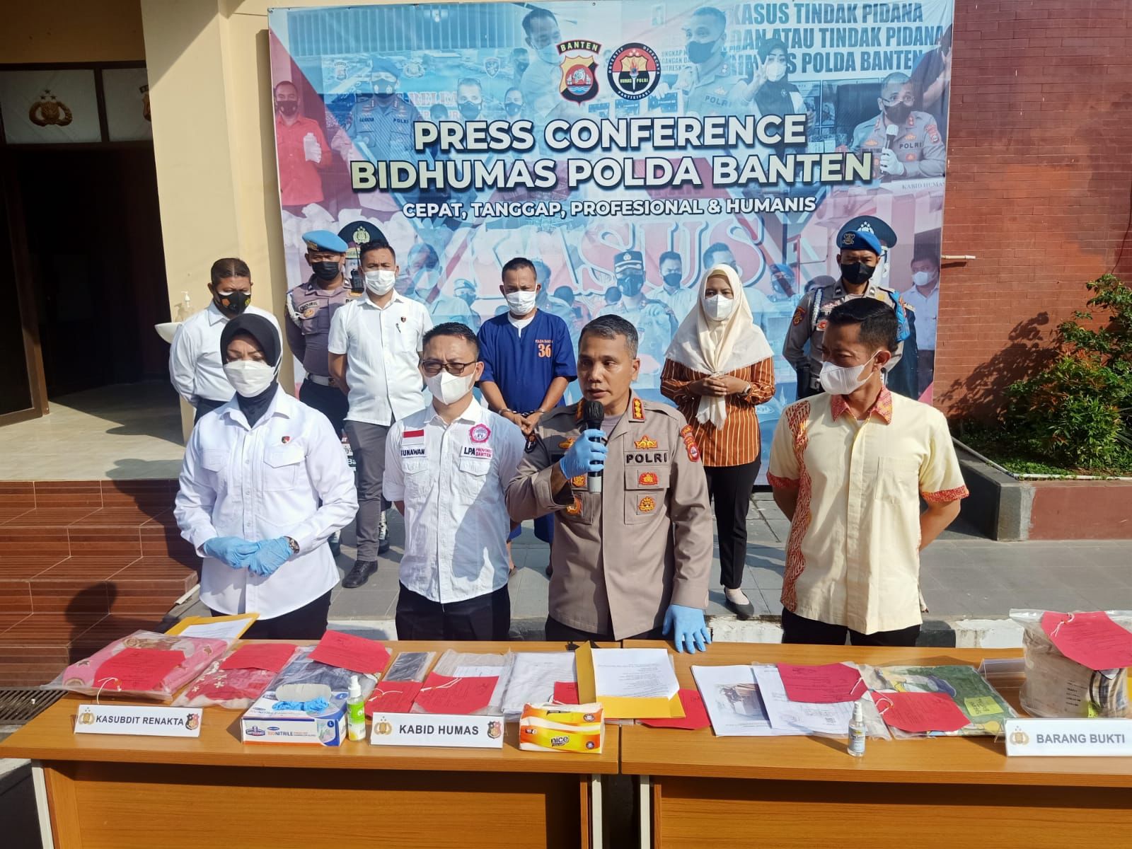 Kasubdit Renakta Ditreskrimum Polda Banten Kompol Herliya mengatakan, “Pelaku membuat konten untuk menarik perhatian istri, pembuatan konten dari 29 Juni – 15 Juli dan terdapat empat konten yang tersebar di masyarakat, anak merupakan hasil dari pernikahan sirih tersangka dengan istri, pada saat ini anak sudah ada dengan pelapor atau ibu korban, dan akan kami adakan trauma healing kepada korban dari psikologi Polda Banten,” kata Herliya