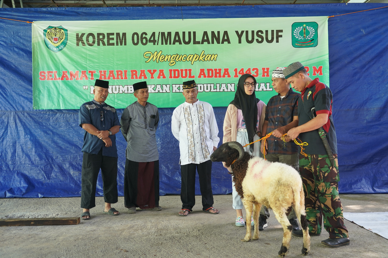 (Suarasiber.co.id) – Usai Sholat Idul Adha, Kasipers Korem 064/MY Kolonel Caj Suparno mewakili Danrem 064/MY Brigjen TNI Yunianto menyerahkan Hewan Kurban secara simbolis kepada Panitia bertempat di Makorem 064/MY, Minggu (10/07/2022).