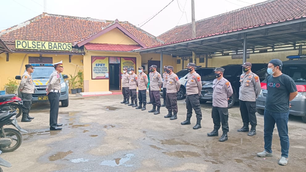 Kegiatan apel juga diikuti oleh Kapolsek Baros AKP L Wahyu Bintarna S.IP dan sejumlah anggota Polsek Baros.