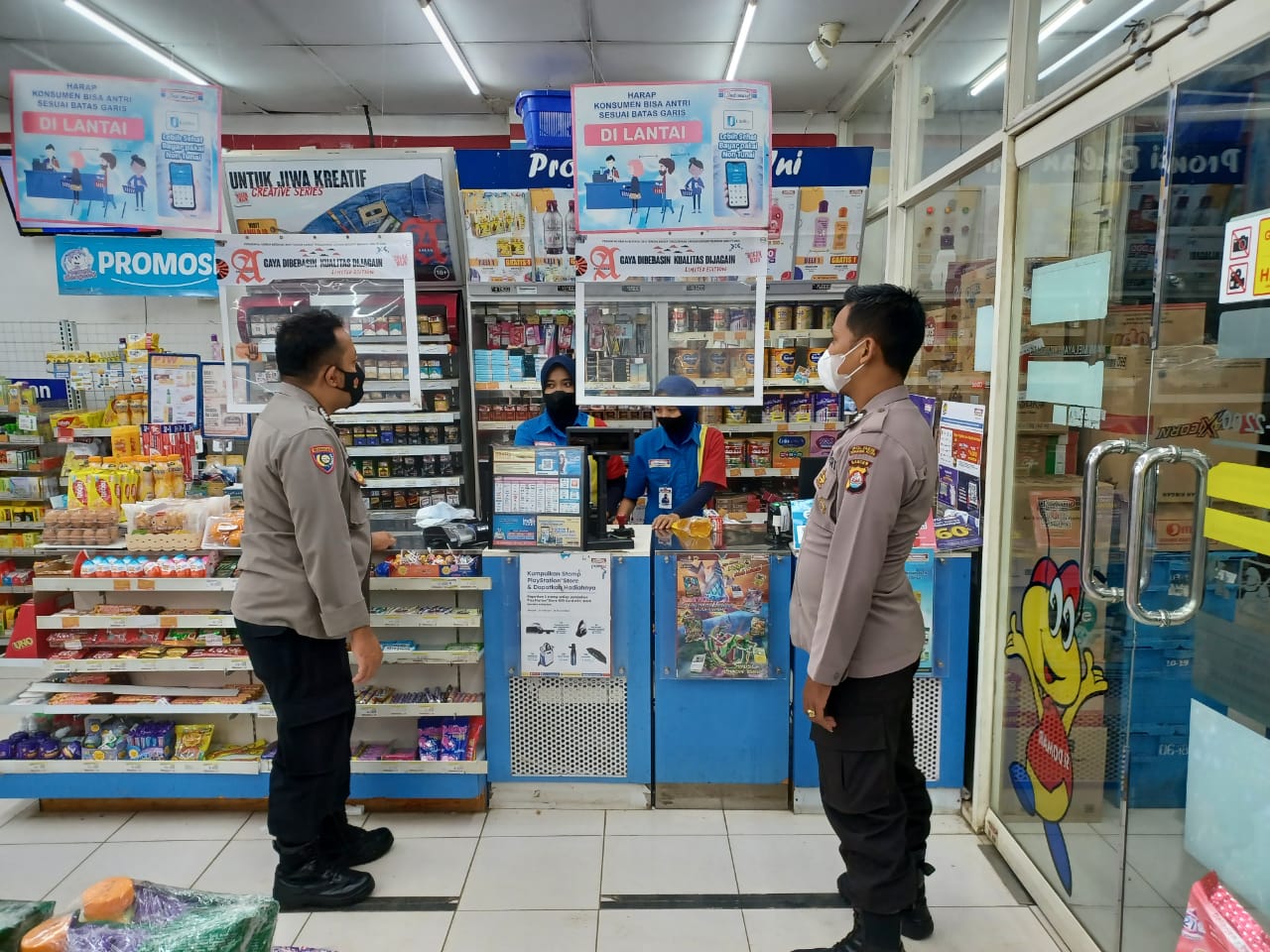 POLRESTA SERKOT,(Suarasiber.co.id) | Personil Polsek Pabuaran Polresta Serkot Polda Banten Bripka Joe Noviansah bersama Brigpol Arip Ginanjar melaksanakan Patroli dialogis dengan mendatangi Alfamart maupun indomart pastikan aman memberikan himbauan Kamtibmas serta mengingatkan kembali himbauan dan edukasi protokol kesehatan kepada pelayan untuk selalu menerapkan 5 M Protokol Kesehatan.Selasa,(05/07/2022)