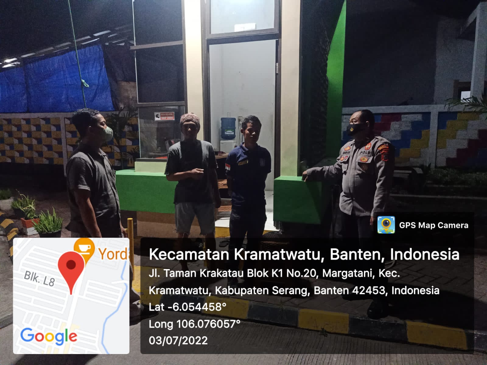 Polresta Serkot,(Suarasiber.co.id) | Anggota piket Polsek Kramatwatu Polresta Serkot melaksanakan kegiatan patroli di malam hari dalam rangka pencegahan antisipasi tindak pidana kriminalitas di pemukiman wilayah hukum Polsek Kramatwatu Polresta Serkot Polda Banten. Minggu, (3/7/2022)