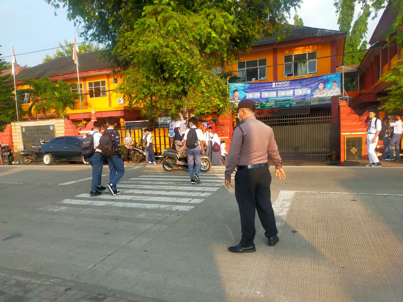 Pengaturan lalu lintas di Jalan Raya Kasemen Depan Sekolah SMA N 4 Kota Serang Kelurahan Kasemen Kecamatan Kasemen dilaksanakan personel Bripka Rensi dan Brigpol Taufiq, mengingat kawasan tersebut banyaknya para Siswa/ Siswi yang Hendak Sekolah serta banyak pedagang yang menjual barang dagangannya dipinggir jalan raya, selain itu penataan parkir kendaraan baik roda dua maupun roda empat yang memakan bahu jalan, sehingga menimbulkan kemacetan.