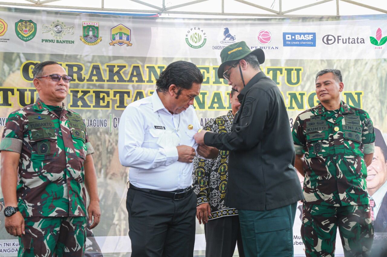 SERANG, (suarasiber.co.id) – Penjabat (Pj) Gubernur Banten Al Muktabar mendampingi Wakil Menteri Pertanian Republik Indonesia Harvick Hasnul Qolbi dan Pangdam III Siliwangi Mayjen TNI Kunto Arief Wibowo melakukan Panen Raya Jagung di Kelurahan Curug Manis, Kecamatan Curug, Kota Serang, Rabu (3/8/2022). Wujud sinergi dan kolaborasi Pemerintah, TNI/Polri, dan masyarakat dalam Gerakan Bersatu Untuk Ketahanan Pangan.