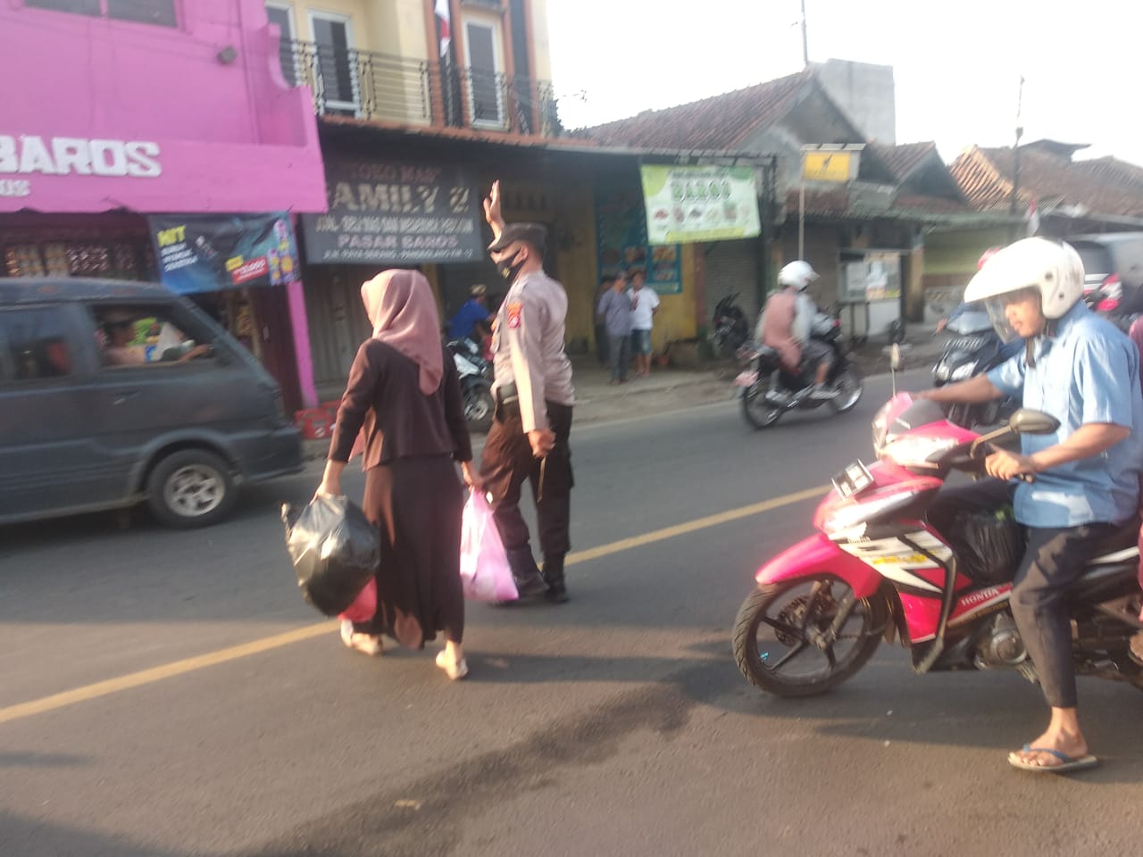 Kapolsek Baros AKP L Wahyu Bintarna S.IP, mengatakan dengan adanya pengaturan dan penempatan anggota di jalanan di pagi hari di saat banyak masyarakat yang sedang melakukan aktivas.