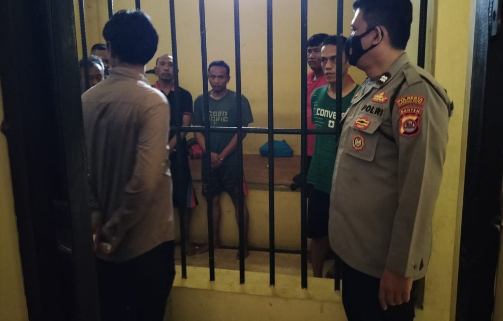 Anggota piket Polsek Kramatwatu Polresta Serkot Aiptu Doddy beserta anggota piket melaksanakan cek dan kontrol ruang tahanan dengan Jumlah Tahanan Mako Polsek Kramatwatu Polresta Serkot yang berjumlah 7 (Tujuh) orang dalam keadaan sehat dan aman, Petugas melakukan pengecekkan terhadap ruang tahanan serta menanyakan kondisi kesehatan tahanan.