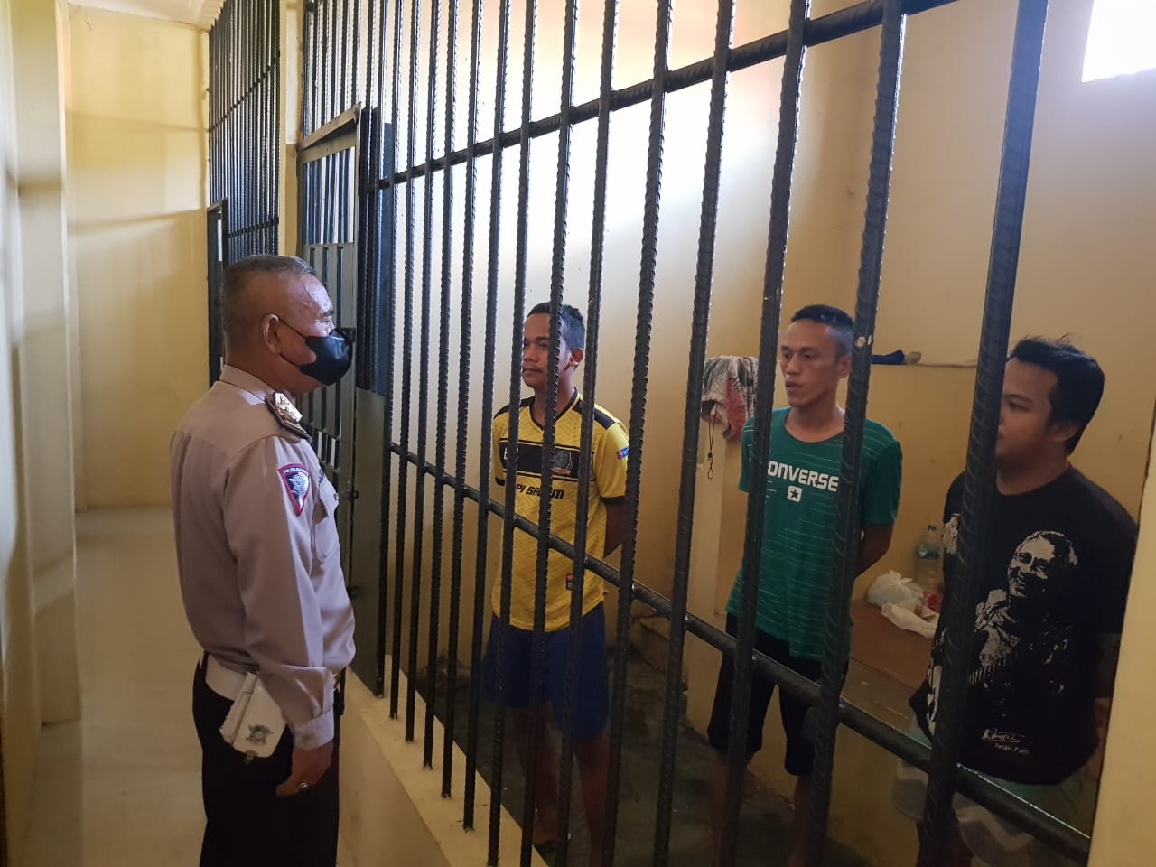 Panit Lantas Polsek Kramatwatu Polresta Serkot Iptu Agus Sutiana beserta anggota piket melaksanakan cek dan kontrol ruang tahanan dengan Jumlah Tahanan Mako Polsek Kramatwatu Polresta Serkot yang berjumlah 3 (Tiga) orang dalam keadaan sehat dan aman, Petugas melakukan pengecekkan terhadap ruang tahanan serta menanyakan kondisi kesehatan tahanan.
