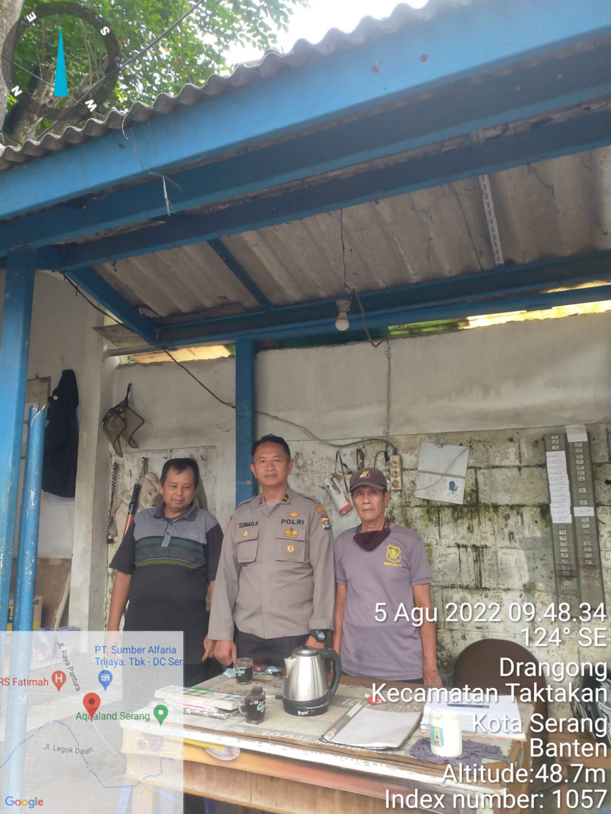 POLRESTA SERKOT,(Suarasiber.co.id) – Dalam Upaya menjaga stabilitas kamtibmas di Wilayah hukum Polsek Taktakan Polresta Serkot Polda Banten, Kanit Samapta Polsek Taktakan IPDA Sumaji, lakukan patroli dan Sambang ke lokasi Perusahaan di lingkungan Legok Kel. Drangong kecamatan Taktakan Kota Serang. Jum’at, 05/08/2022.