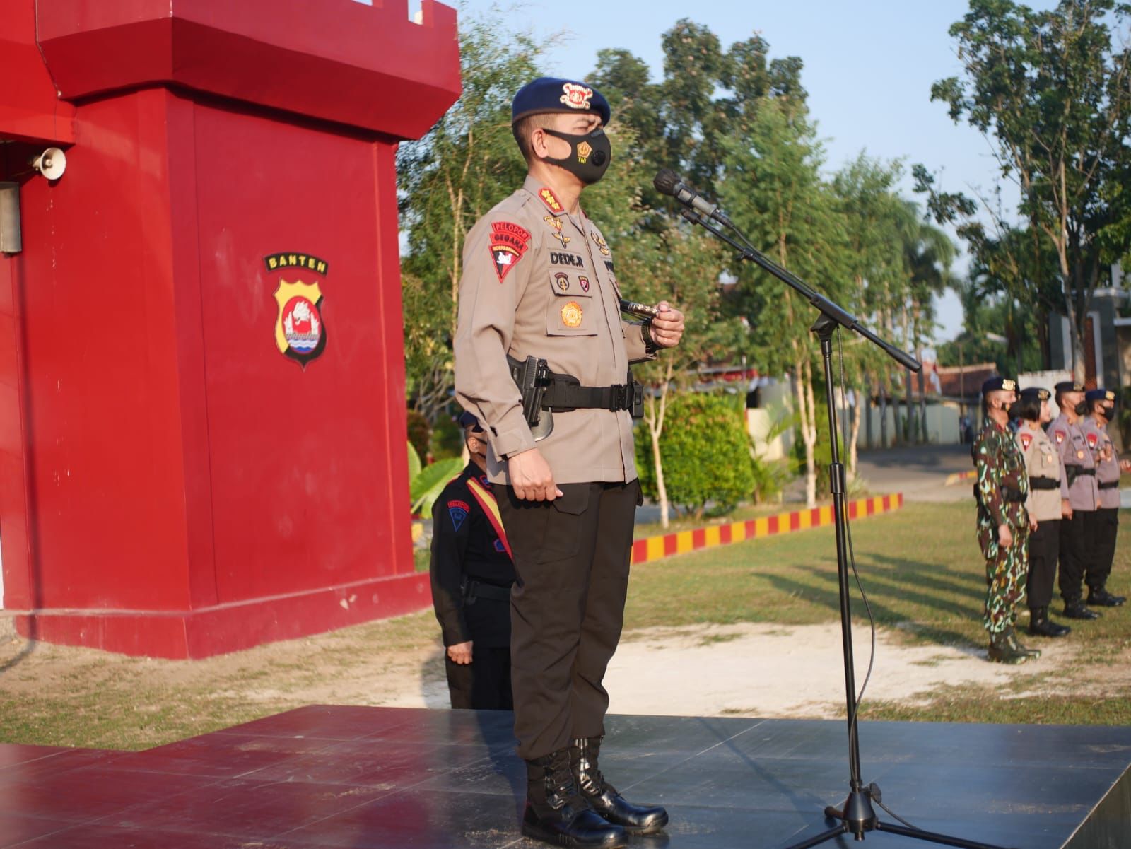 Dede berpesan Kepada seluruh personel agar selalu atensi terhadap perkembangan pandemi walaupun saat ini khususnya daerah Banten terjadi penurunan kasus Covid-19, “Kepada seluruh personel agar selalu atensi terhadap perkembangan pandemi walaupun saat ini khususnya daerah Banten terjadi penurunan kasus Covid-19 juga secara nasional terdapat penurunan angka kasus Covid-19, namun saya berpesan untuk dilaksanakan agar baik didalam bertugas ataupun diluar dinas wajib seluruh personel tetap menerapkan protokol kesehatan,” kata Dede.
