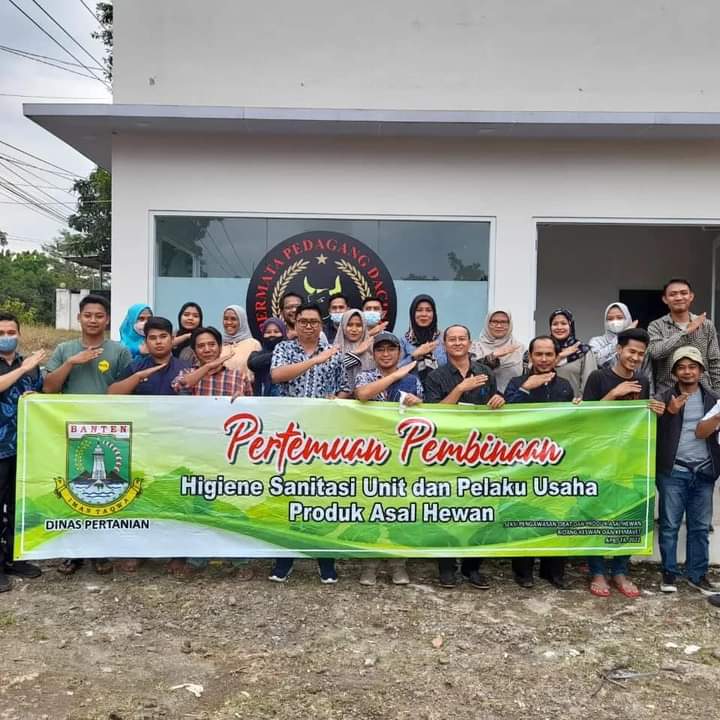 LEBAK, (suarasiber.co.id) – Dalam rangka meningkatkan pengetahuan pelaku usaha produk hewan dalam penerapan praktik Higiene dan Sanitasi maka Dinas Peternakan & Kesehatan bekerjasama dengan Dinas Pertanian Provinsi Banten & Paguyuban Pedagang Daging Indonesia (PPDI) melaksanakan kegiatan Pembinaan Higiene Sanitasi Unit dan Pelaku Usaha Produk Hewan di Kantor Sekretariat PPDI, Desa Pasir Tangkil Kecamatan Warunggunung (04/08/22).