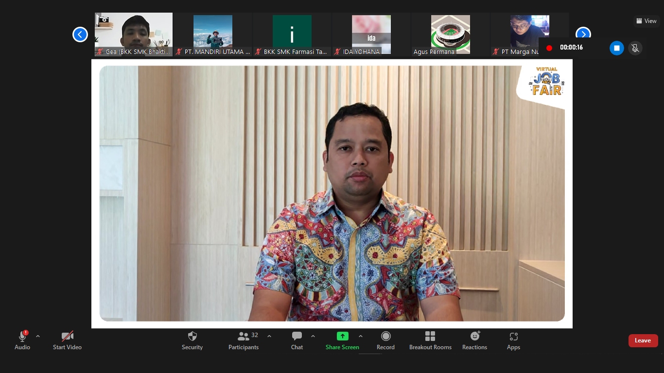 Agenda rutin bulanan yang diinisiasi oleh Dinas Ketenagakerjaan (Disnaker) Kota Tangerang dengan sebanyak 22 perusahaan pembuka lowongan pekerjaan dibuka oleh Wali Kota Tangerang H. Arief R. Wismansyah secara daring.