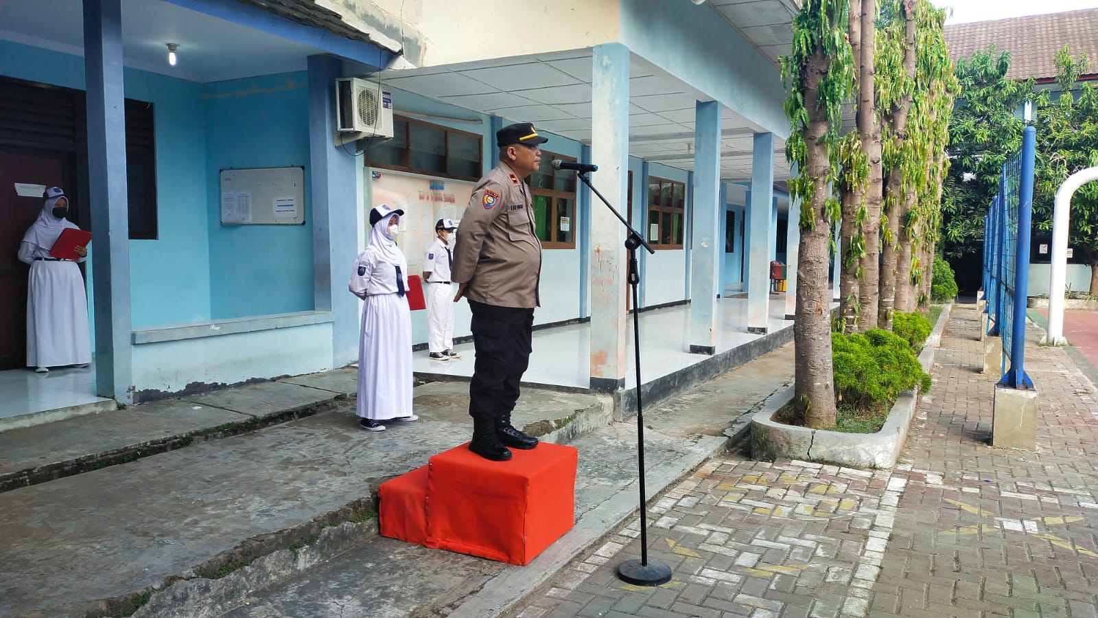 Kanit Bimas Polsek Serang Polresta Serkot Ipda IRWAN, melaksanakan upacara bendera di SMPN 3 Kota Serang.