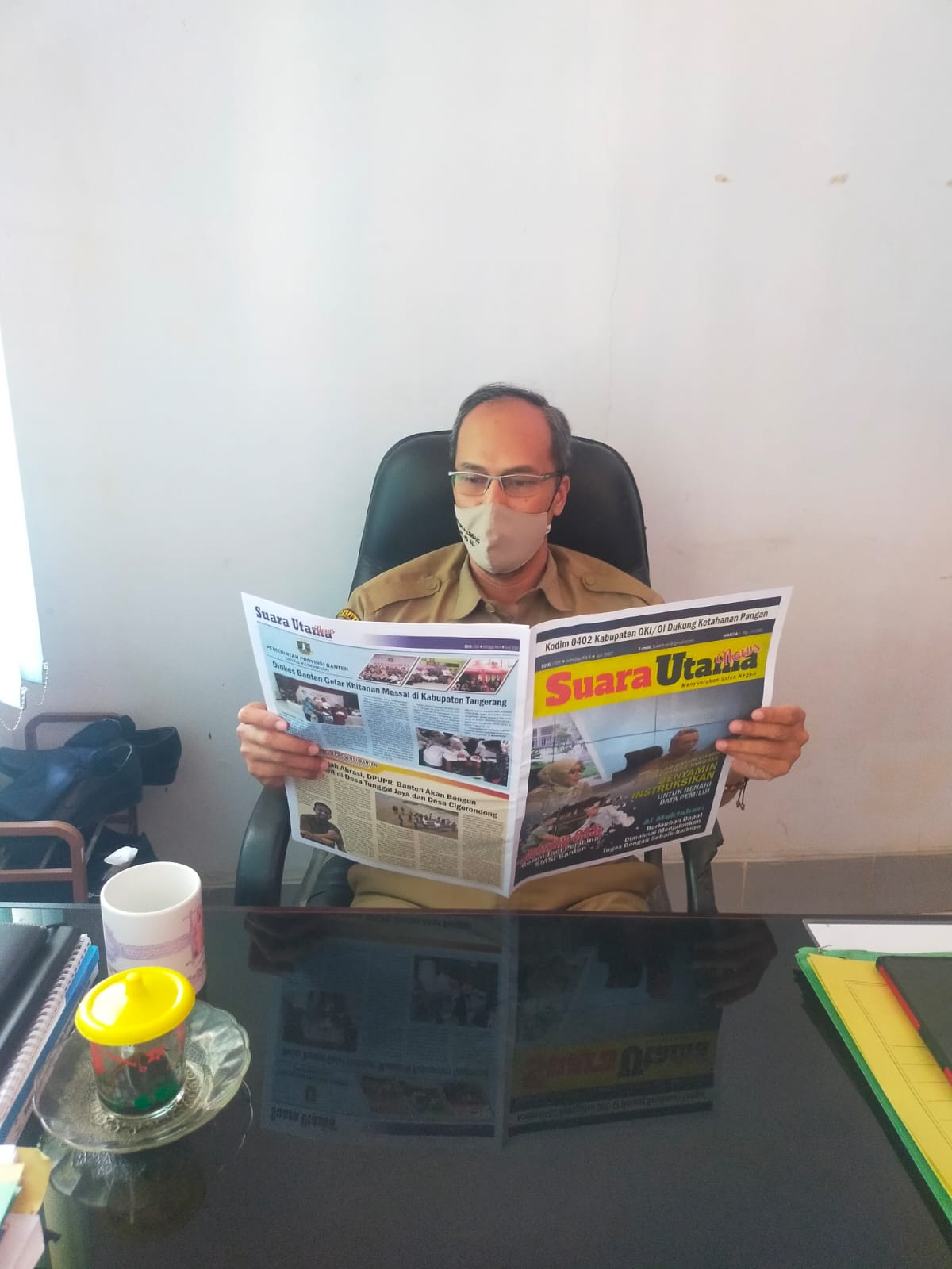 LEBAK,(suarasiber.co.id)-Kepala Bidang (Kabid) Pelayanan Usaha Perikanan Dinas Perikanan Kabupaten Lebak Oktody Pamungkas, ST sedang santai membaca tabloid Suara Utama News dan memberikan apresiasi kepada Tabloid cetak Suara Utama News.