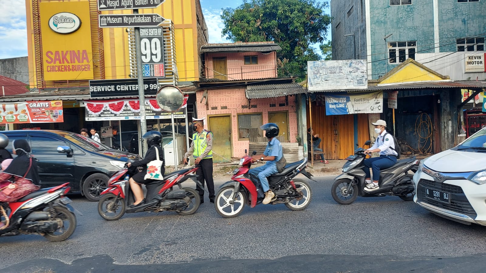 POLRESTA SERKOT,(Suarasiber.co.id) – Kanit Laulintas Polsek Serang Polresta Serkot AKP M.Simbolon melaksanakan gatur antisipasi kemacetan pada saat keberangkatan karyawan, anak sekolah, dan warga yang hendak ke Pasar, Senin (15/08) pukul 06 : 30 Wib