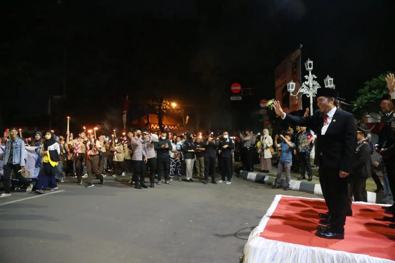 SERANG, (suarasiber.co.id) – Penjabat (Pj) Gubernur Banten Al Muktabar mengikuti Peringatan Upacara Taptu oleh jajaran Korem 064/Maulana Yusuf di gerbang utama Pendopo Lama Gubernur Banten, Selasa malam (16/8/2022). Tradisi kemiliteran sejak menjelang Hari Kemerdekaan untuk meningkatkan kewaspadaan di tengah tugas dan panggilan negara.