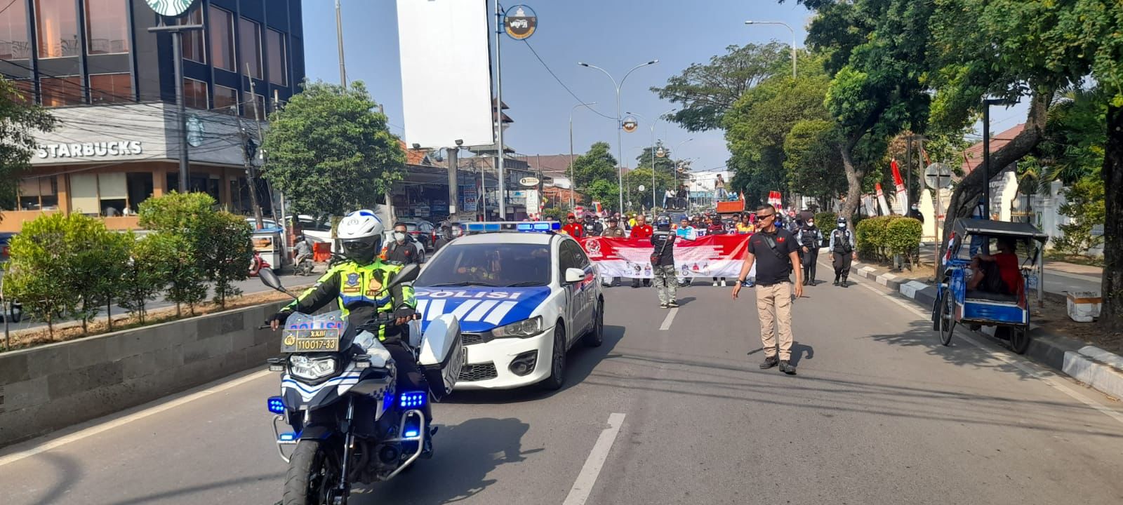 Pengamanan dan pelayanan juga dilakukan sejak perbatasan antara wilayah hukum Polresta Serkot dengan Polres Serang. Massa aksi yang membawa sepeda motor dan mobil yang berisikan sound sistem atau kerap disebut mobil komando, di kawal oleh Satlantas Polresta Serkot.