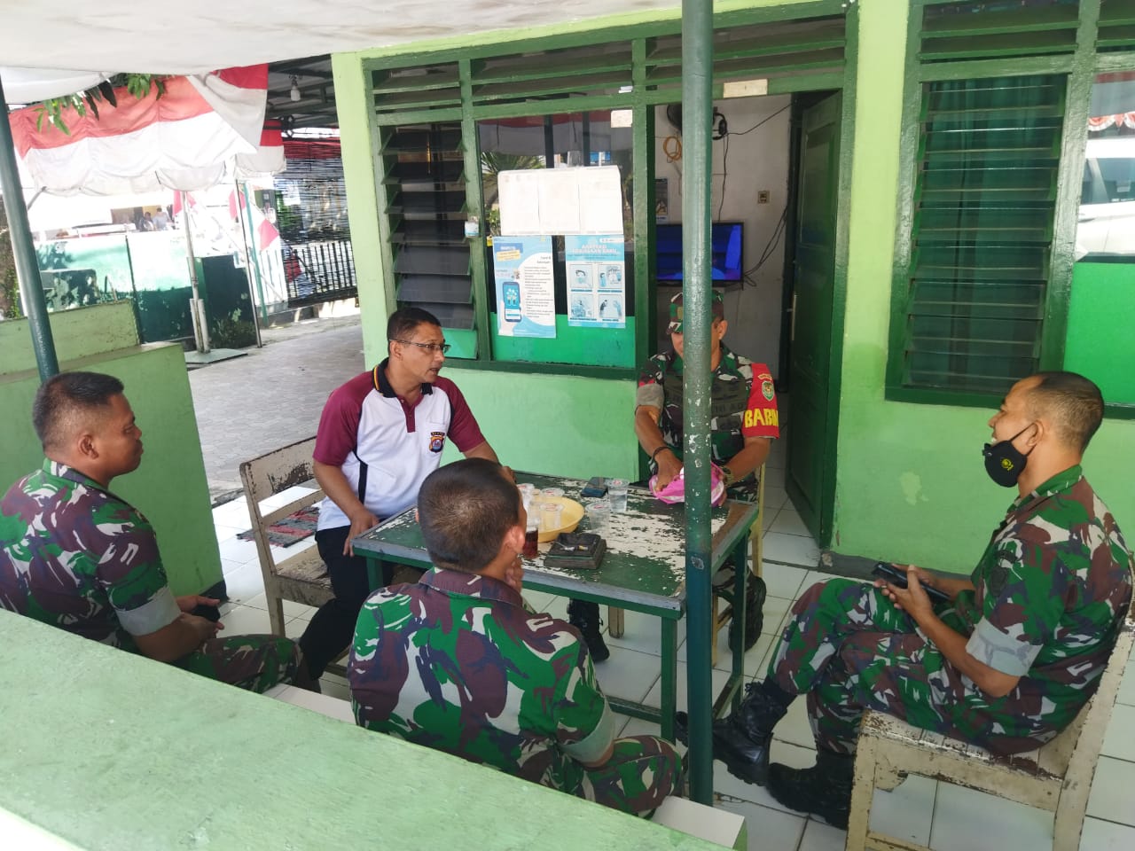 Seperti yang terlihat di Koramil Baros dilokasi tersebut AKP L Wahyu Bintarna S.IP sedang berdialog dengan Danramil Baros dan anggota, Jum’at (19/8/2022) pagi.