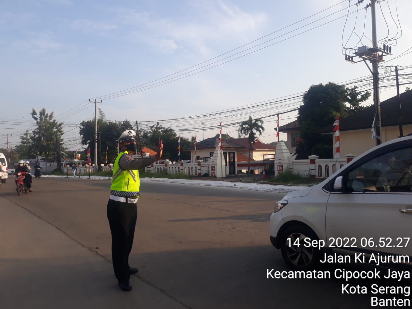 Kegiatan pengaturan tersebut dilaksanakan Pada Rabu 06.52 Wib 14/09/2022, di Jalan Raya Serang-Pertir Cipocok Jaya.