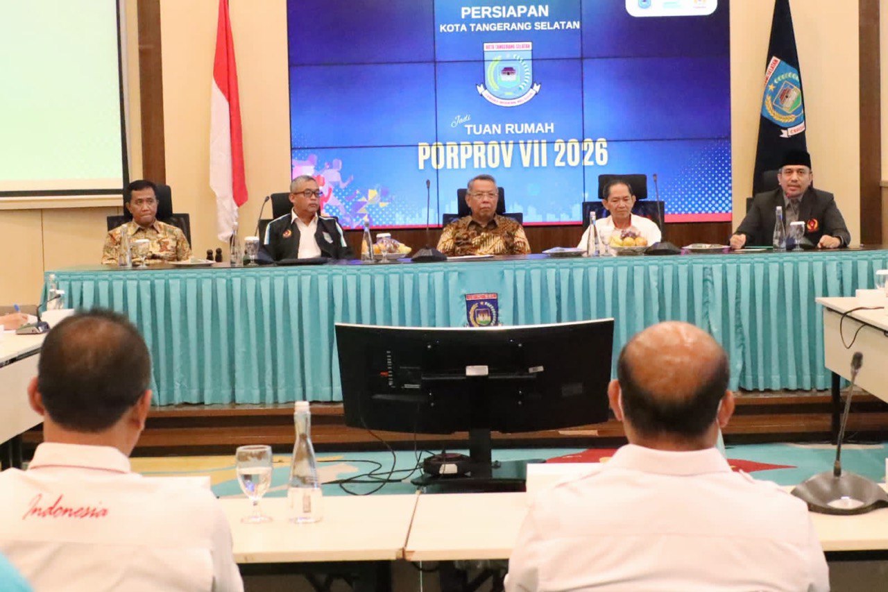 Pertemuan ini dalam rangka membahas persiapan Kota Tangerang Selatan sebagai salah satu kandidat tuan rumah Porprov VII Banten tahun 2026.