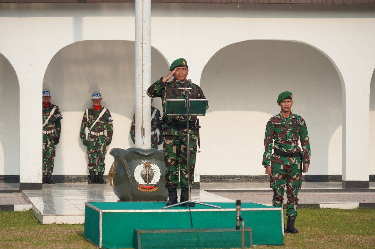 Danrem 064/MY, Brigjen TNI Tatang Subarna, selaku Irup diikuti segenap prajurit dan PNS Makorem 064/MY serta Balak Aju jajaran Korem 064/MY, bertempat di Lapangan Makorem 064/MY Jalan Maulana Yusuf No.9 Kota Serang .pada Senin (19/9/2022).